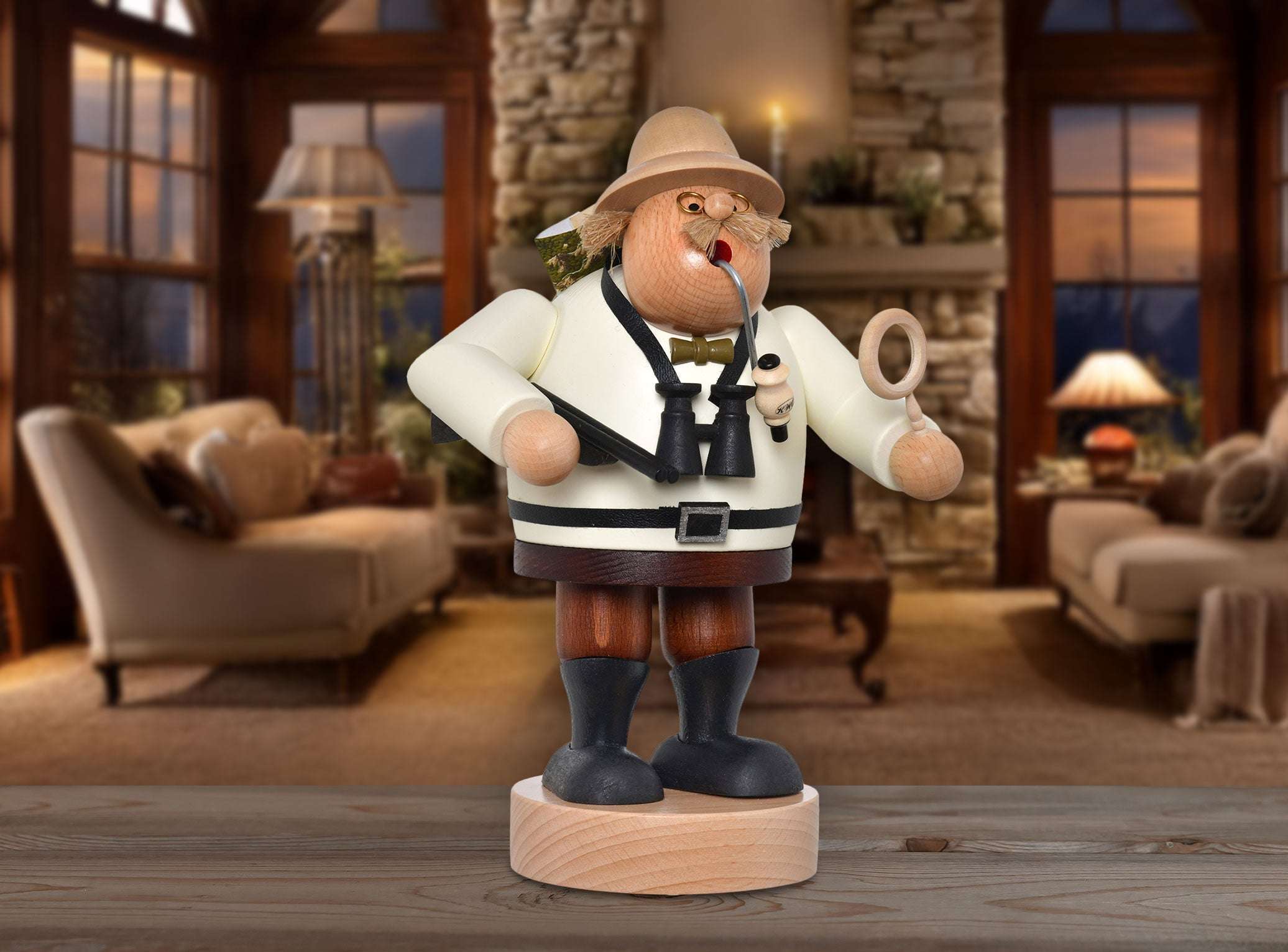 Entdecke echte Erzgebirgskunst mit dem Räuchermann „Entdecker“ von KWO – Kunstgewerbe Werkstätten Olbernhau.