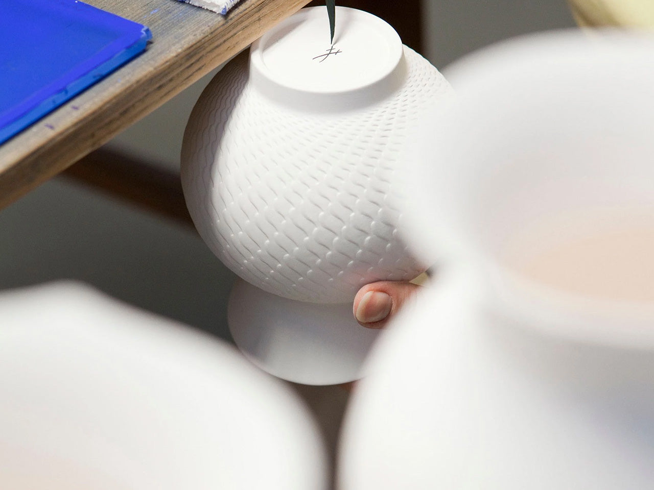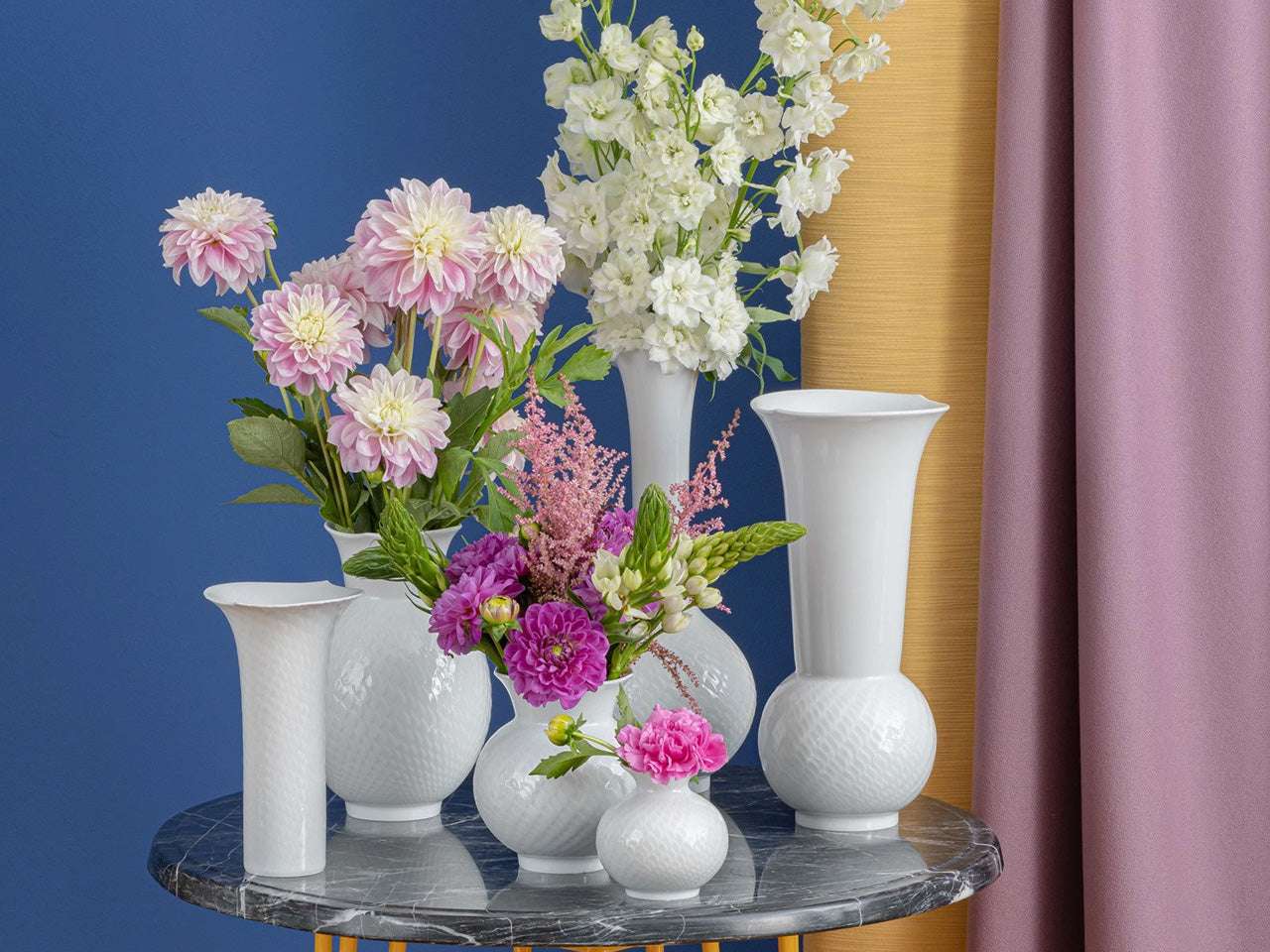 Diese elegante Vase "Wellenspiel Relief" vereint klassische Meissen-Elemente und reflektiert zugleich den zeitgenössischen Zeitgeist. In seinem Detailreichtum und seiner Akkuratesse unterstreicht das Relief der Vase die Plastizität und die Hochwertigkeit.